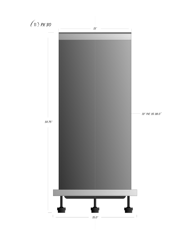 A single PX30 can be used to sum the Although smaller cubical subs may seem more convenient and less conspicuous, their small size requires huge amounts of power and more equalization to achieve a full 20 Hz extension with a flat frequency response. Unfortunately, in reality they rarely do, and on top of that, transients are poor and distortion levels high—really only useful for the LFE (low frequency effects) on movies. Producing high quality bass for music requires a low Q sub. There's no cheating the laws of physics—the air volume of a large enclosure is required. Boxes are also prone to panel resonances that add undesirable frequencies not found in the Few floorstanding speakers actually deliver strong, balanced, clean bass below 40 Hz, many barely do 50 Hz. The need for the lowest frequencies may not be immediately apparent, but once you've experienced linear, full spectrum audio, there is no turning back. Why stereo bass : Two Subwoofers? Naturally! In depth info about the PX30 can be found by clicking on PX30 Design. Project S.2 shown with SP15c & DSP/amps/power distributer rack mounted